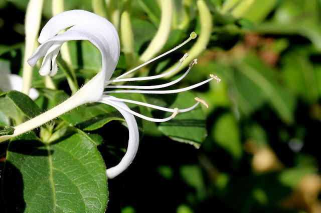 Es la más común de las madreselvas de jardín. Las flores son de color blanco, a veces amarillas, pero con un aspecto cremoso. Casi como si fueran de cera. Es una trepadora de hoja caduca, aunque no siempre pierde todas las hojas dándole un atractivo adicional en otoño.