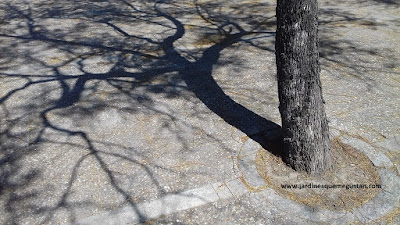 jacaranda proyectada sobre el pavimento de una plaza dura |