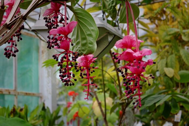 Las plantas protegidas y tropicales las encontraremos en alguno de los tres invernaderos que existen en el jardín. Destacan entre sus colecciones los árboles ejemplares como el Roble Jagiellonian, un roble común de más de 220 años, los ejemplares de cicas de más de 150 años, o flores no tan comunes en esas regiones como iris y fucsias.