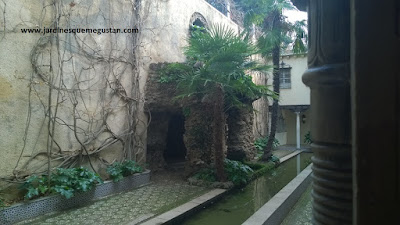 palmeras que surgen de la terraza inferior, nos adentramos por un patio