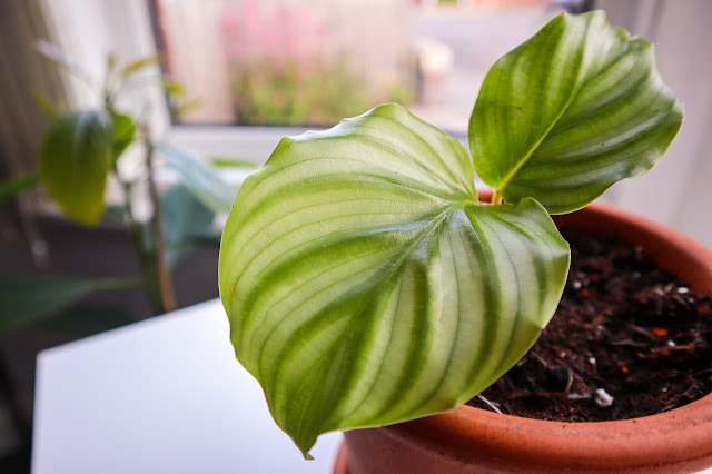 Si buscas una planta elegante, la Calathea orbifolia con sus grandes hojas redondeadas con líneas plateadas y verdes es una excelente opción.