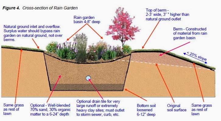 transversal a un jardín de lluvia tendríamos en primer lugar una masa vegetal