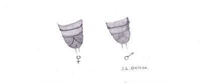 | Un dibujo que realicé del dimorfismo sexual presente en las crisálidas de Heliotis |