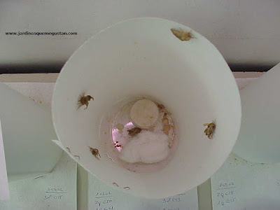 con una lupa para juntar una proporción determinada de hembras y machos. Así