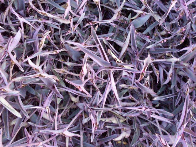 Incluso, se podrían incluir como plantas suculentas porque muchas de ellas acumulan agua en los tejidos de tallos y hojas lo que les confiere una enorme resiliencia en época de sequía. Y hablando de los tejidos y su apariencia, podremos encontrar especies en las cuales los pigmentos dominantes, en vez de la clorofila, son las antocianinas proporcionándole un follaje de coloración púrpura.