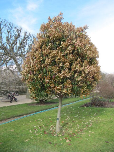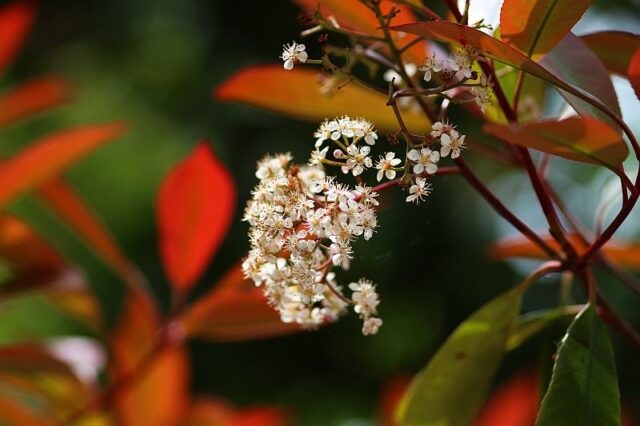 Uno de estos árboles que empieza a hacerse un hueco entre el arbolado de viario es la fotinia (Photinia serratifolia), una especie arbórea de la familia de las Rosáceas interesante por la coloración rojiza del envés en sus hojas jóvenes y la copiosa inflorescencia primaveral de color blanco. La fotinia es un árbol perenne, a veces usado como arbusto, que puede alcanzar hasta doce metros de altura, pero nosotros lo encontraremos en viario como un arbolillo de unos cinco metros de altura.