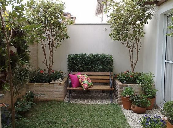Además de contar con un jardín vertical puedes aprovechar el perímetro del espacio para colocar un arriate para continuar con el abastecimiento de vegetación para tu jardín pequeño. O también puedes comprar bonitas macetas de gran tamaño y disponerlas contra la pared para que el espacio esté más repleto de vegetación y buen olor.