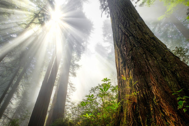 Y tenemos suerte de contar con su presencia en la actualidad, pues a los pies del titán existe un claro que indica que la industria maderera detuvo su actividad cuando el lugar donde vive Hyperion fue declarado espacio protegido. Este hecho ocurrió en los años 70 y quién sabe que otros titanes hemos perdido.