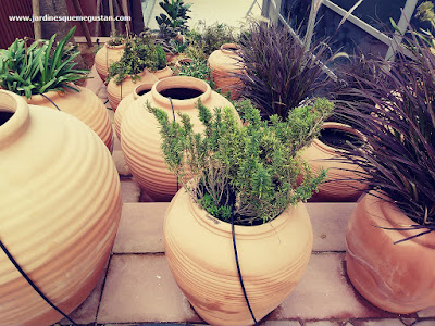 las que hay unos contenedores de cerámica perfectamente regados en los que se