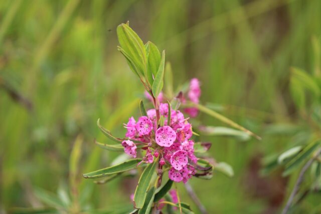 Una especie de kalmia muy conocida por sus flores es Kalmia angustifolia, un pequeño arbusto de hojas perennes y cuyas raíces forman una asociación con hongos llamada micorriza con la que es capaz de absorber nutrientes del suelo que sola no podría.