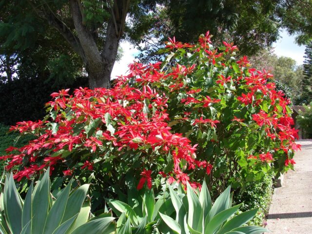 Este último es el caso de la flor de pascua (Euphorbia pulcherrima), que se cultiva en determinadas fechas, pero que si encuentra las condiciones necesarias para crecer puede llegar a convertirse en un arbusto considerable.