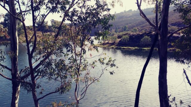 Descendemos, atravesamos un puente a ras del agua sobre el embalse y volvemos a subir para atravesar un bosquecillo de pinos. Seguimos ascendiendo. Finalmente, el sendero pavimentado no continúa, pero si el camino natural que se pierde entre sotobosque de jara y lentisco. Nos damos la vuelta y volvemos sobre nuestros pasos contemplando de nuevo el paisaje que aquel Sendero de La Zarcita tiene que mostrarnos.