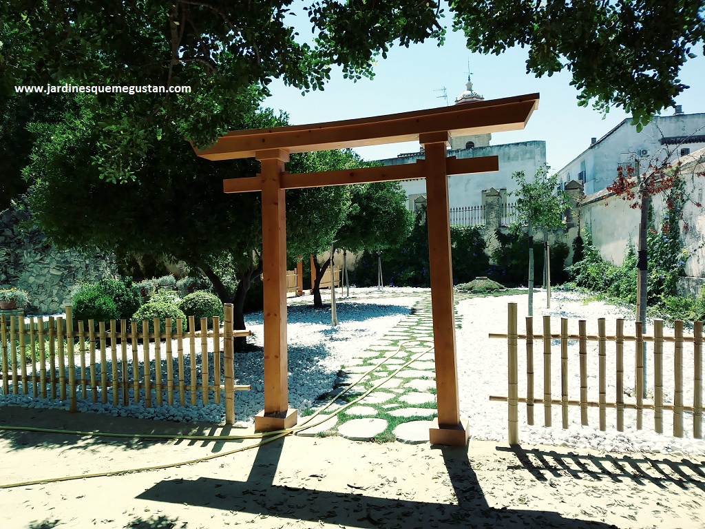 bambú y en las que hay unos pórticos de madera de estilo oriental. En el suelo