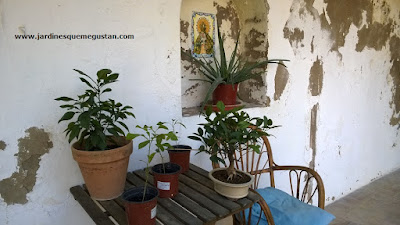 algunos jazmines y naranjos, se cultivaban rosales y claveles en contenedor, y