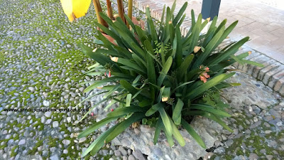 pies de la palmera habitan una Lantana, varias Canna indica y algunas hierbas espontáneas que se han “colado” en